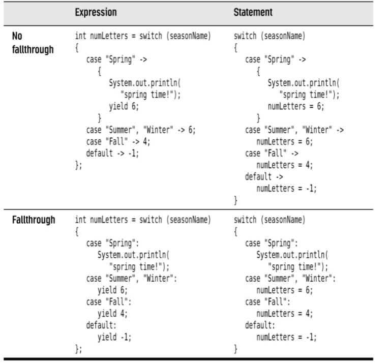 Java 14 ile gelen özelliklerden birisi de switch expression'dur bunlar fallthrough ile birlikte gelirler. Her bir case ifadesi noktalı virgül ile biter (;). Ve break ifadesi gibi yield keywordünü artık kullanırız.