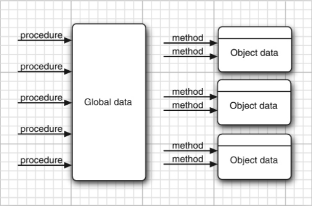 Bir object-oriented (nesne-tabanlı) program objects (nesnelerden) yapılır. Her nesne specific özelliklere sahiptir. Eskiden daha çok functional yani procedural (C'de ki gibi) programlama geliştiriliyordu örneğin bir tane web browseri olduğunu düşünün 2000 tane proceduru kullanıyor yani 2000 tane fonksiyon'u kullanması hakikaten normal bir şey değil ve gerçekten bunu yönetmek kolay da değil bunun yerine biz OOP-style'si yani OOP türünde bunu örneğin 20 tane methodu 100 tane class'a bırakırsak en azından bu bir programcı için classları yönetme yada bir yerde hata oldu mu nerede olduğunu çözebilmek için daha kolaydır.